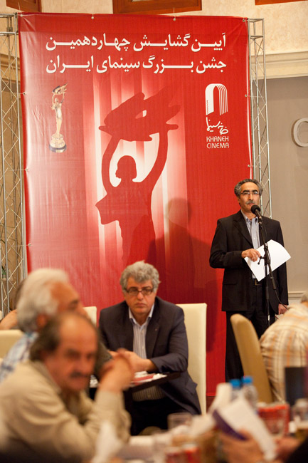 در ادامه اين مراسم فرهاد توحيدي دبير چهاردهمين جشن خانه سينما به ايراد سخنراني پرداخت و مراسم گشايش داوري جشن را اعلام كرد وي در ابتدا گفت : خوشحالم كه از امشب تا دو ماه و اندي ديگر شرب مدام می دوستی و رفاقت دارم . جشن امسال حداقل به لحاظ كمي وسيع تر از سال گذشته برگزار مي شود. كساني كه در سال گذشته در همه بخش ها فرم شرکت پركرده بودند امسال به آثار جديد اضافه شدند و مورد قضاوت قرار مي گيرند و عملا با يك جشن دوسالانه روبرو هستيم.