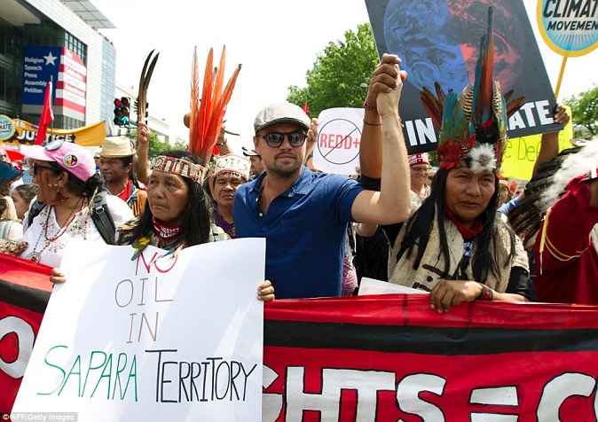 این راهپیمایی در صدمین روز حضور ترامپ به عنوان رییس جمهور آمریکا و در اعتراض به وی برگزار شد. دی کاپریوی ۴۲ ساله در عین حال در توییتر با انتشار عکسی گروهی با رهبران سرخپوستان نوشت: باعث افتخار است که به سران سرخپوستان و آمریکاییهای بومی که برای عدالت آب و هوایی مبارزه میکنند، همراه شدهام. به من در حمایت از آنها ملحق شوید.