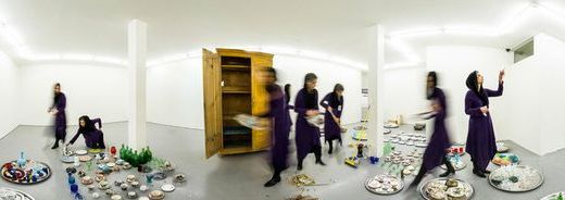 پس هنرمند این اثر هر چیز عتیقه و لوکس، پر بها و کم بها را که تداعی روز به شب رساندن زن در آشپزخانه است، با دلی پر آشوب نابود کرده و درهم می‌کوبد و آنگاه که تمامیت آن‌ها از هم پاشید، از خرده‌های بدرد نخور اما درخشان و افسوس برانگیز آن ها دنیا و تمامیت دیگری بر پا کرده است. دنیایی که در آن همه یکسان در یک سینی یا در یک مکعب و در یک پدیده گرد آمده باشند.