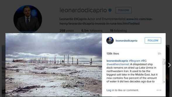 ابراز نگرانی از وضعیت دریاچه ارومیه در اینستاگرام دی‌کاپریو