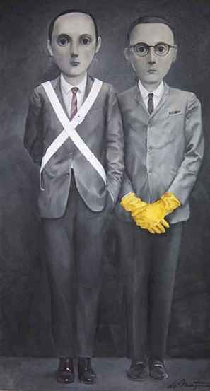 پرترههای او افراد موفق را نشان میدهند، در حالی که با نگاههای تهی شکننده به نظر میرسند. پیکرههای الن دی مایر مجهز به گجتهای دیجیتالی نظیر عینکهای گوگل و آیفون هستند، که به ویژگی مسلط زمانهی ما در دسترسی به اطلاعات و قدرت اشاره دارد. اغلب فیگورها با اشیای کوچک و عجیب به تصویر کشیده شده یا دستکشهای نظافت پلاستیکی پوشیدهاند که نماد یک وسواس اجتماعی برای استرلیزهکردن و کمالی دستنیافتنی است. الن دی مایر (متولد ۱۹۵۵) برای تکنیک ظریف و سطح بالای جزئیات کارهایش در اروپا شناخته میشود. او در آکادمی هنر تیلبورگ هلند تحصیل نموده است و مدرسهی هنر خودش را اداره میکند.